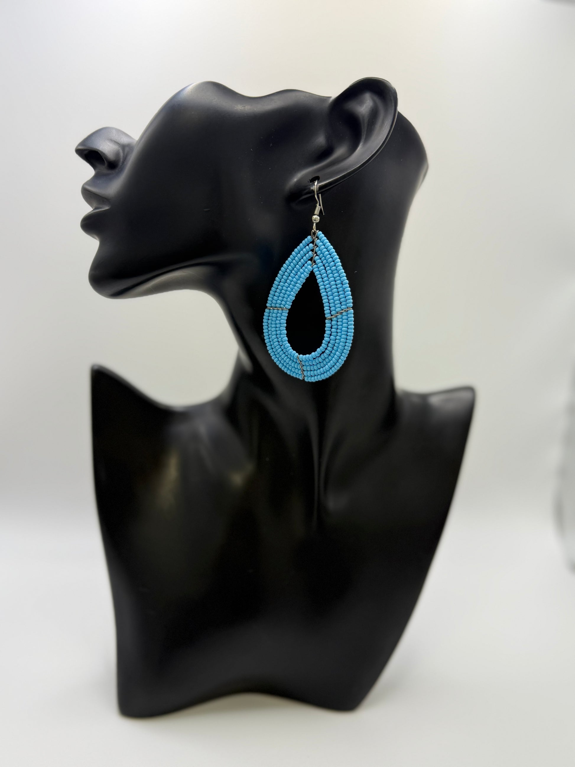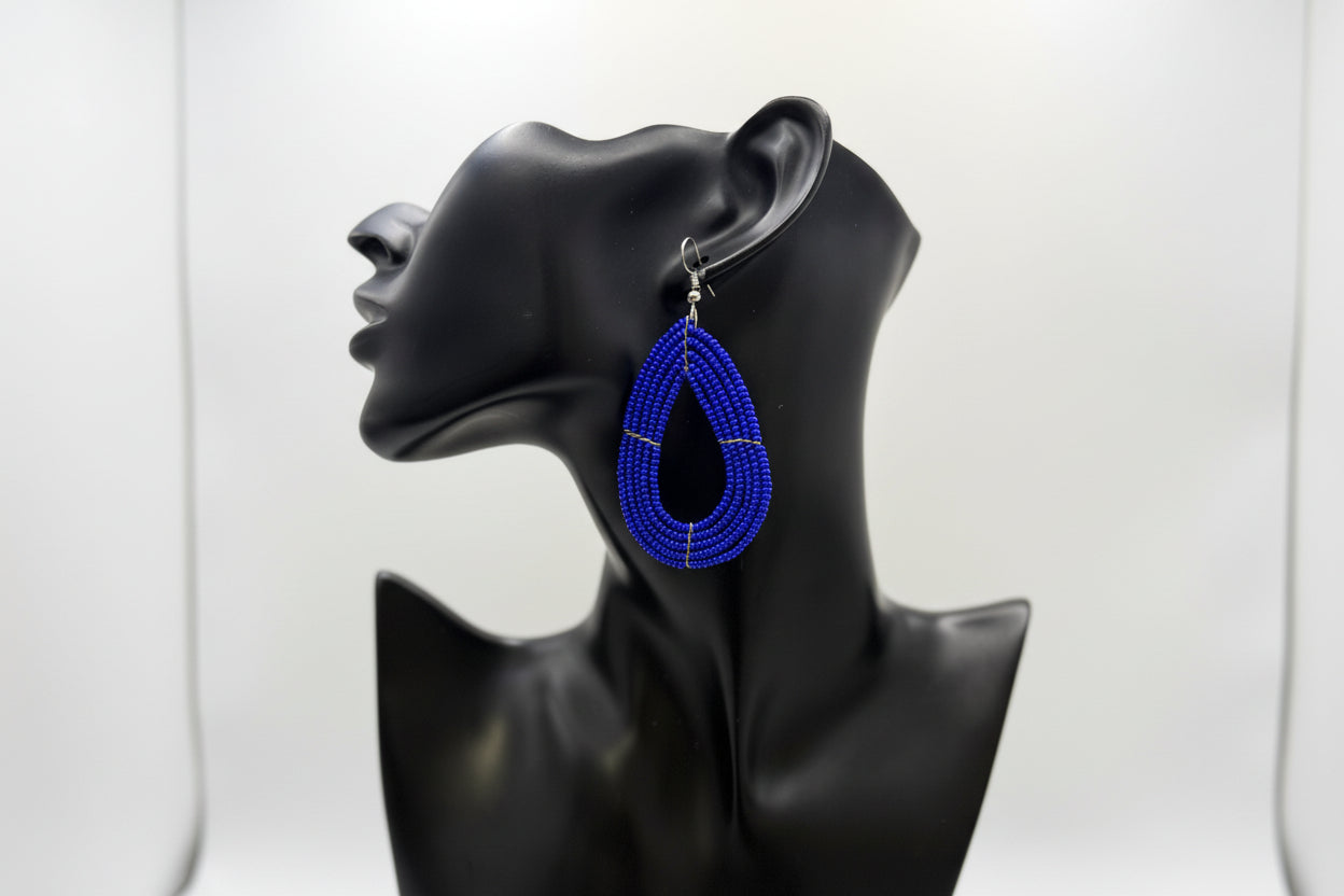 Beaded Maasai Tear Drop Earrings-Solid Color