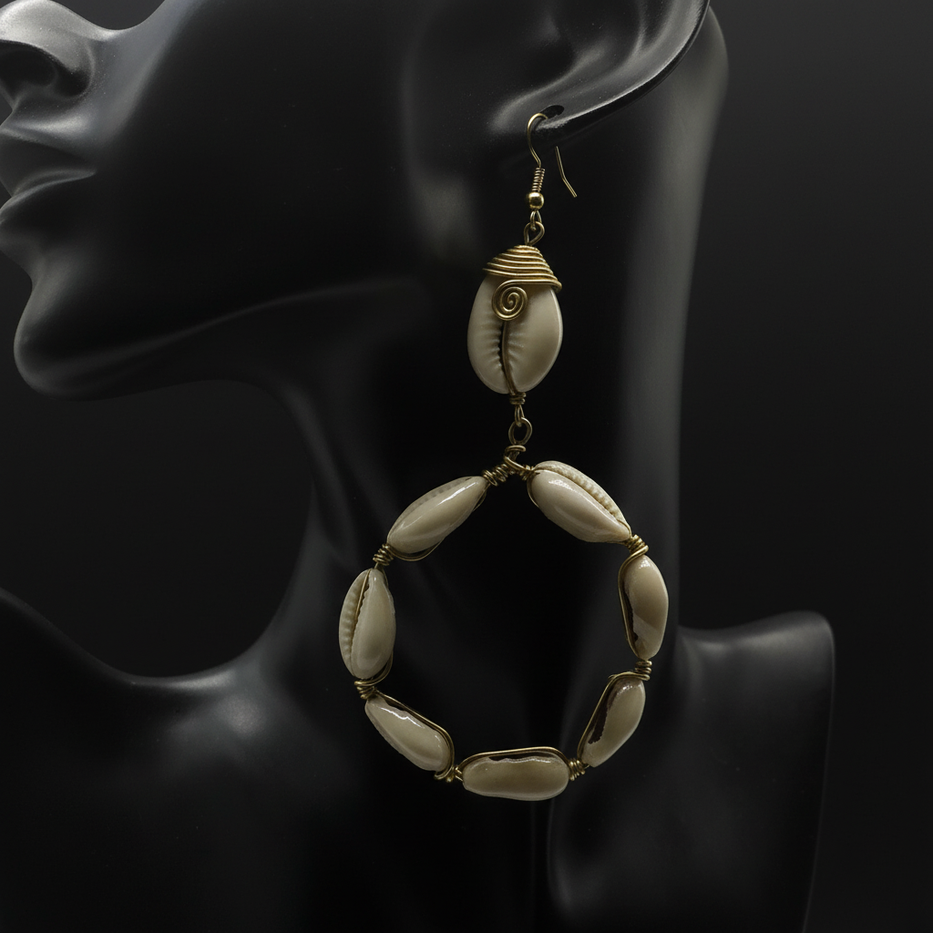 These earrings are the ultimate statement piece for the bold and confident. The tiered design creates beautiful movement with every turn, while the combination of cowrie shells and brass wire delivers a sophisticated bohemian-luxe aesthetic. Perfect for elevating any outfit from casual to evening wear.