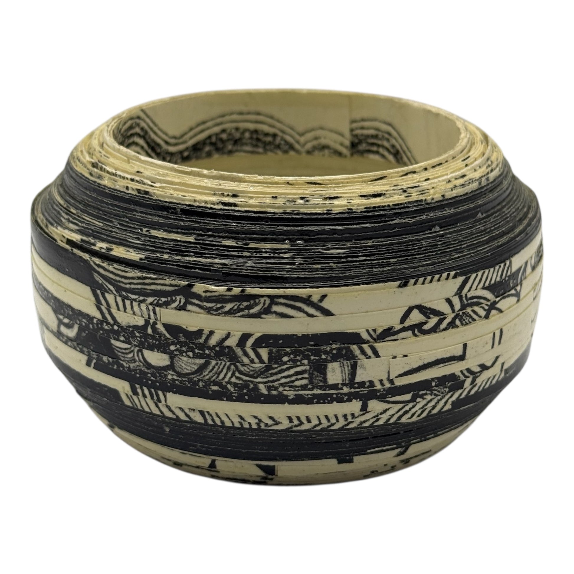 Handcrafted in South Africa, the Imani Reclaimed Paper Bracelet is a striking expression of sustainability and style. Made from meticulously rolled and sealed recycled paper, this lightweight yet durable bracelet features bold black-and-ivory patterning that feels both modern and ancestral.